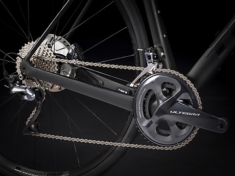A 500 Series OCLV Carbon frame with road-smoothing Front and Rear IsoSpeed, a stable Endurance Geometry for comfort on the longest days, powerful flat-mount disc brakes, and a full 2x11 Shimano Ultegra groupset. Plus, Bontrager Paradigm Comp Tubeless Ready wheels with 700x32 tires for confidence and compliance, a fatigue-reducing Bontrager Elite IsoZone handlebar a micro-adjust seatmast, and fender mounts. Internal storage and cable routing add to the bike's capability and sleek look.