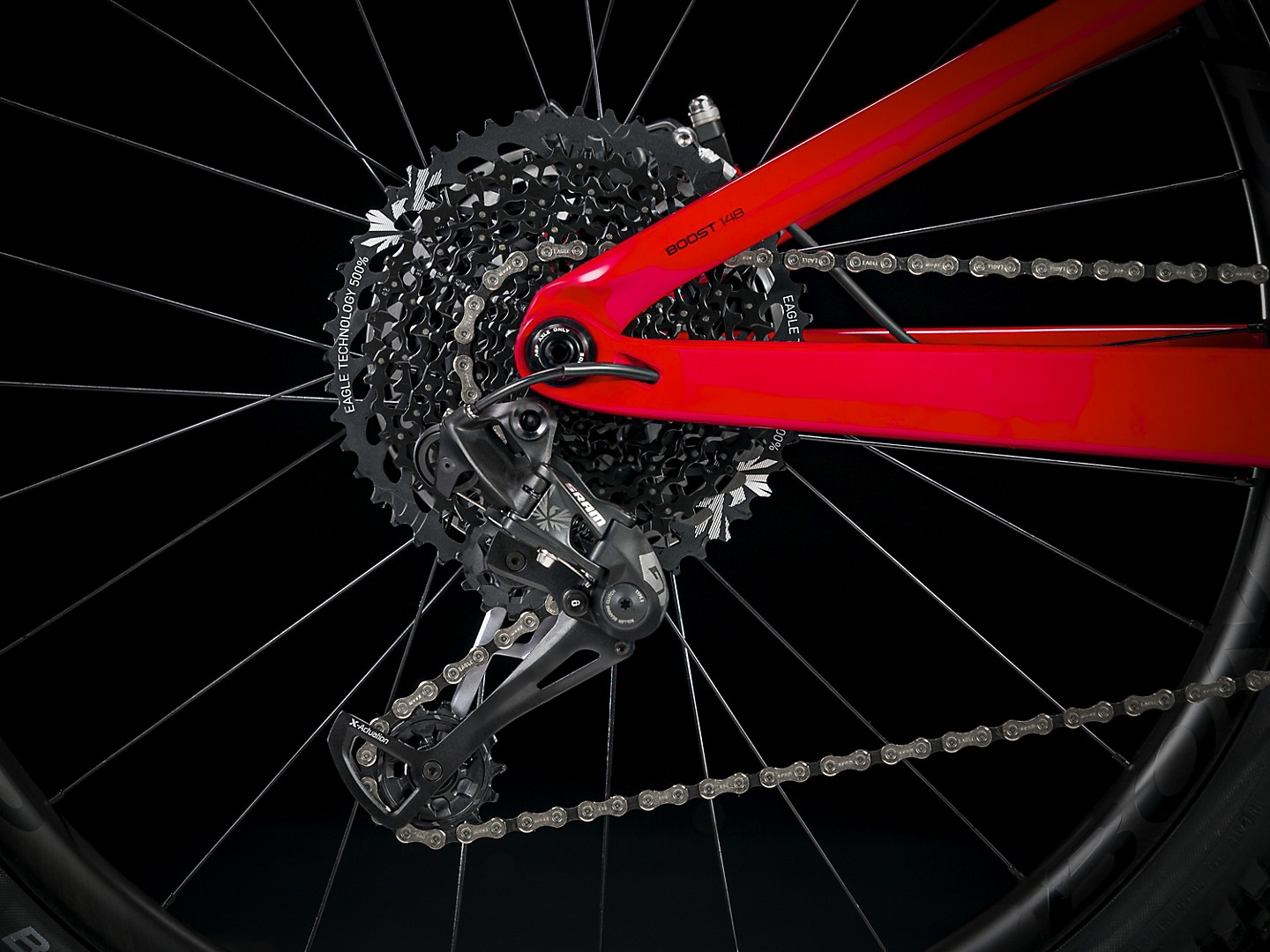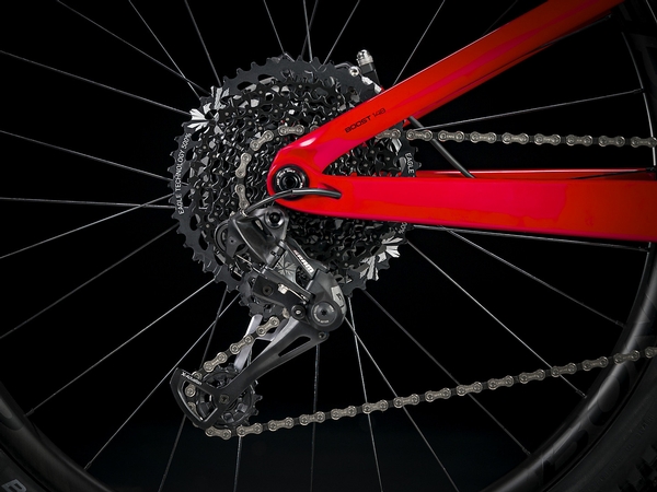 A full OCLV Mountain Carbon frame, a RockShox Lyrik Select Plus 160mm fork with Charger 2 RC2 damper, and 150mm of rear travel with a RockShox Deluxe RT3 shock with Trek's exclusive RE:aktiv with Thru Shaft damper. Plus, a SRAM GX Eagle 1x12 drivetrain, Bontrager Line Elite dropper post, Bontrager Line Pro carbon bars, and Bontrager Line Carbon 30 wheels with a 54-tooth Rapid Drive hub for quick acceleration when you need it most.