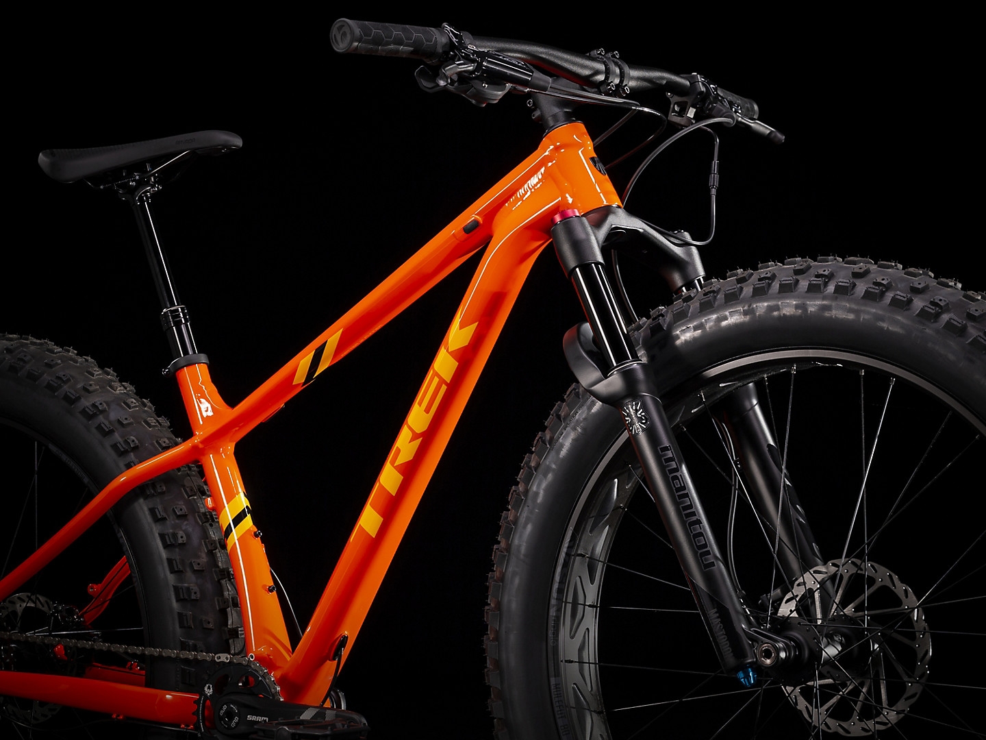 - The combination of the Manitou Mastodon fork and 4.5? tires make it easy to charge through snowy trails and rock gardens alike